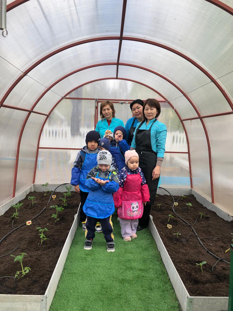 Көктем мезгілі келіп, біздің орталықтағы жылыжайдың кезекті көкеністер отырғызу жұмысы басталып кетті.Жылыжайға көкөністер отырғызып, оны күтіп-баптау, әркез суарып, арамшөптерін жұлу – қажырлы еңбекті қажет етеді. Жастайынан балаларды еңбекке баулып, айналасындағы тірі табиғатқа қамқорлықпен қарауға деген сезімдерін арттыру мақсатында бізде жыл сайын, көктем мезгілінде жылыжай жұмысын іске қосамыз.
