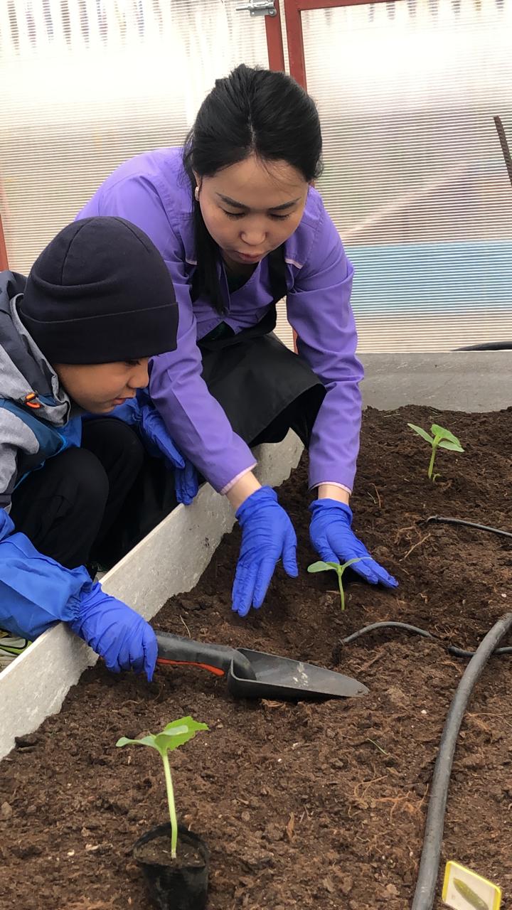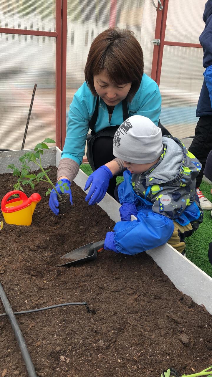Көктем мезгілі келіп, біздің орталықтағы жылыжайдың кезекті көкеністер отырғызу жұмысы басталып кетті.Жылыжайға көкөністер отырғызып, оны күтіп-баптау, әркез суарып, арамшөптерін жұлу – қажырлы еңбекті қажет етеді. Жастайынан балаларды еңбекке баулып, айналасындағы тірі табиғатқа қамқорлықпен қарауға деген сезімдерін арттыру мақсатында бізде жыл сайын, көктем мезгілінде жылыжай жұмысын іске қосамыз.